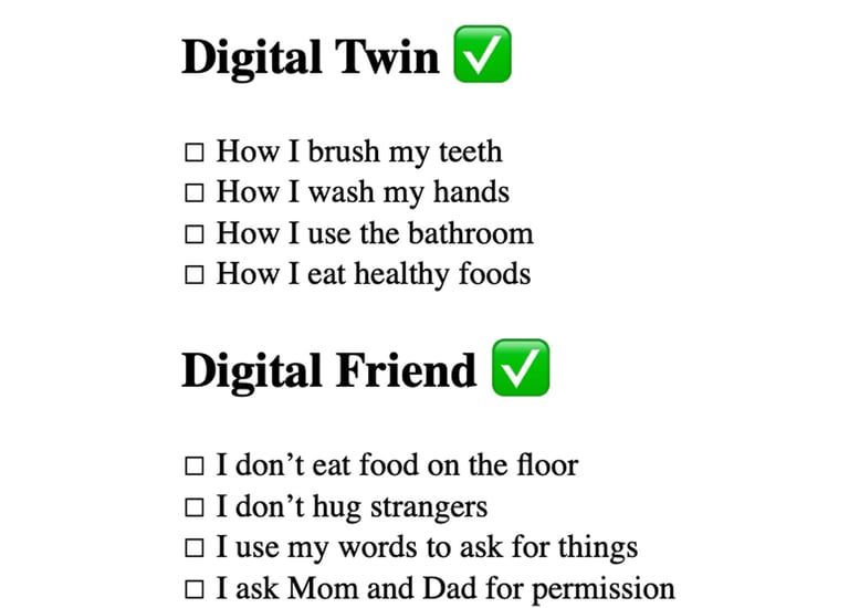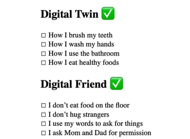Let us know what videos you want us to produce for your child's digital twin or friend.